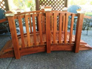 A very nice 8ft by 4ft spindle bridge sealed and ready for Bryan at his custom landscaped water featured backyard.