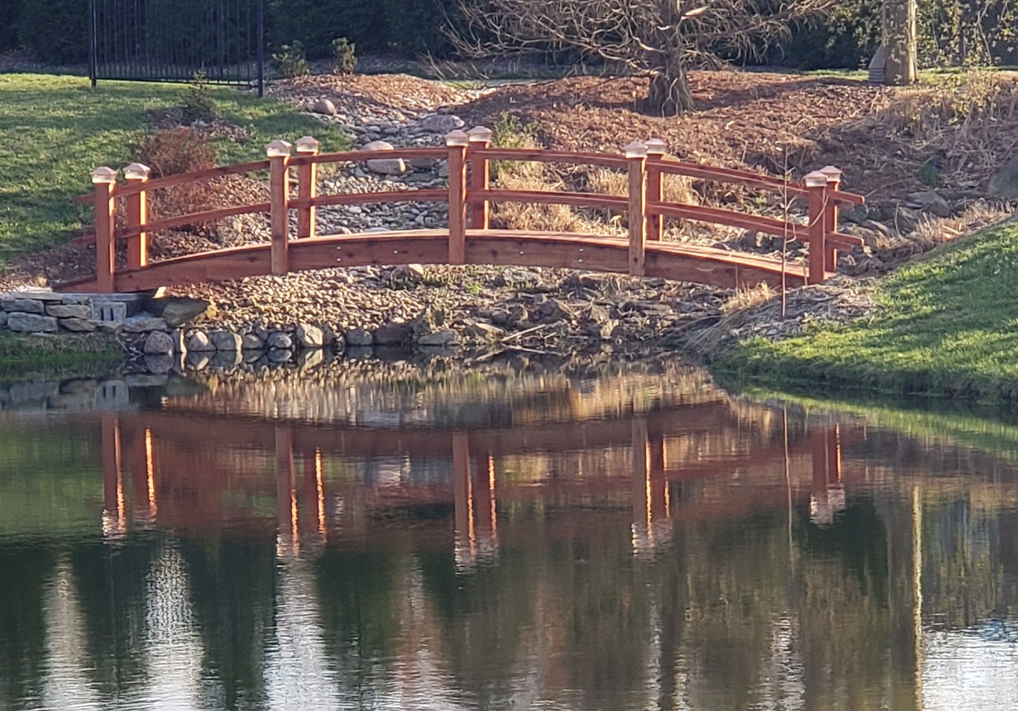 What a 10 ft beautiful bridge after being sealed. This adds elegance to an outstanding landscaping scene.