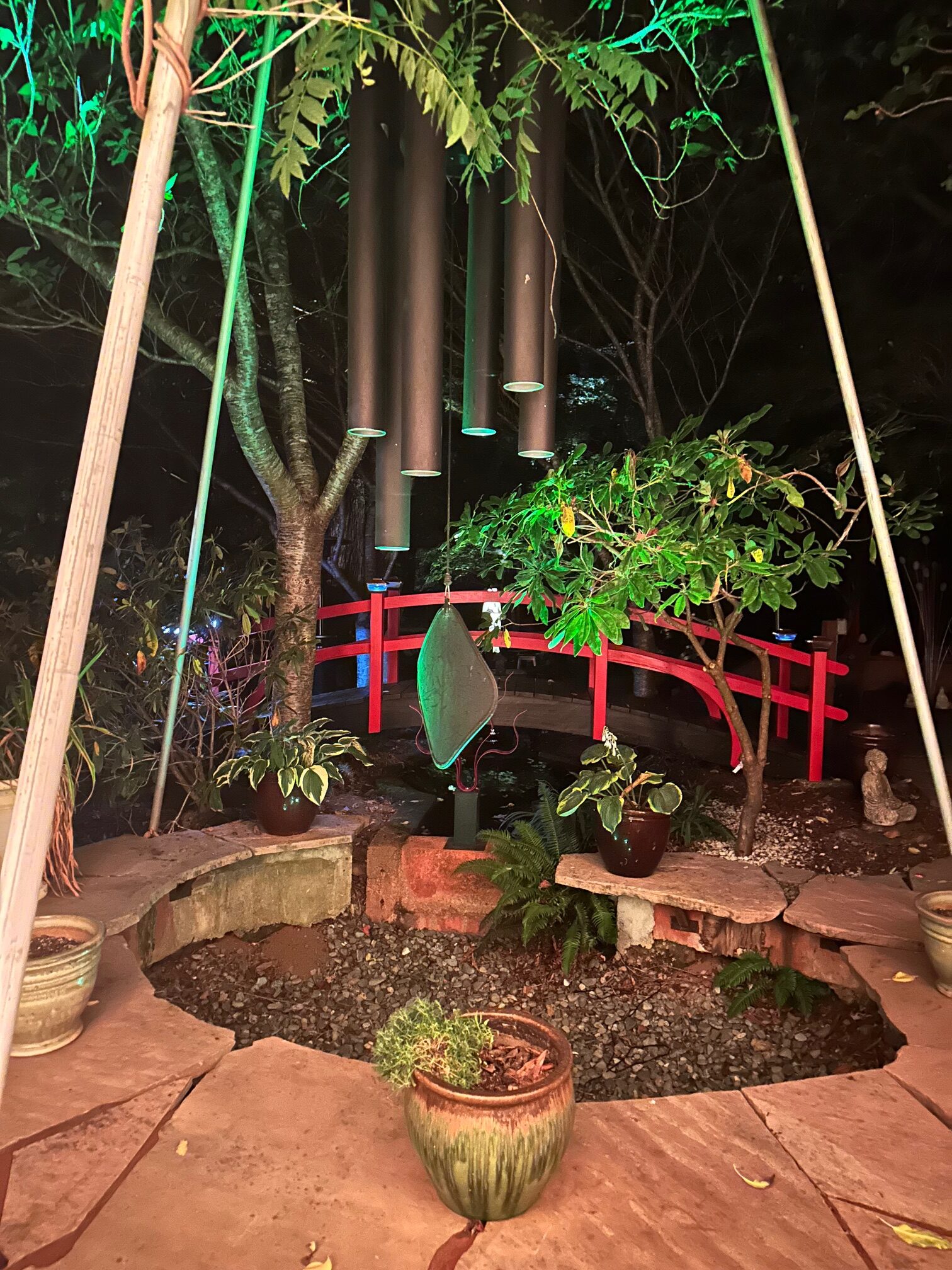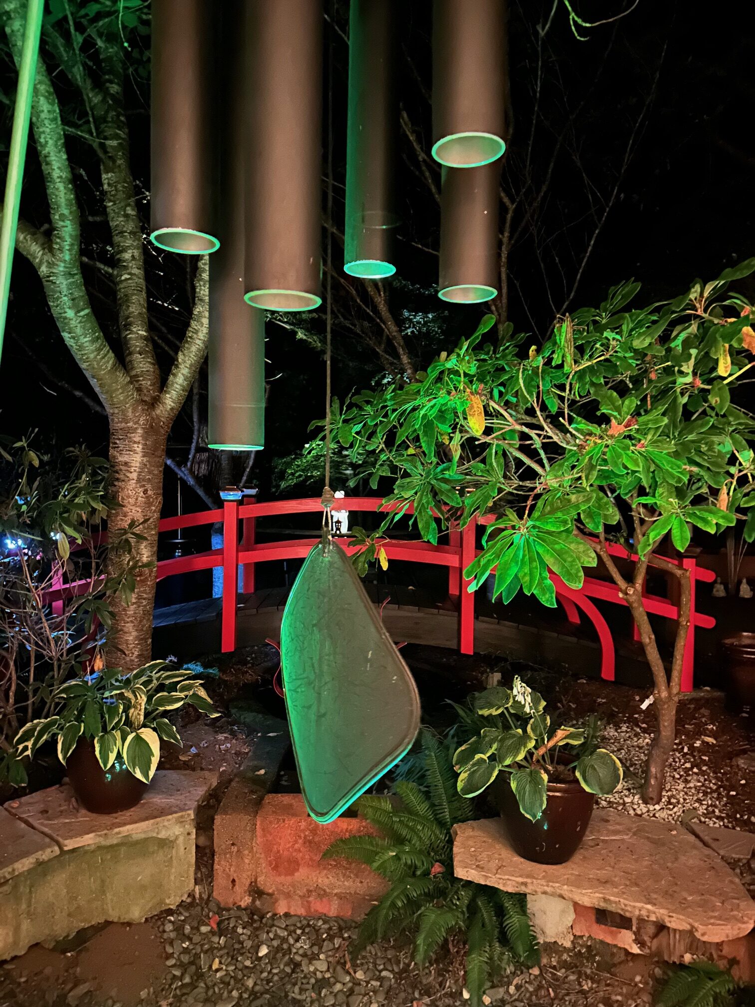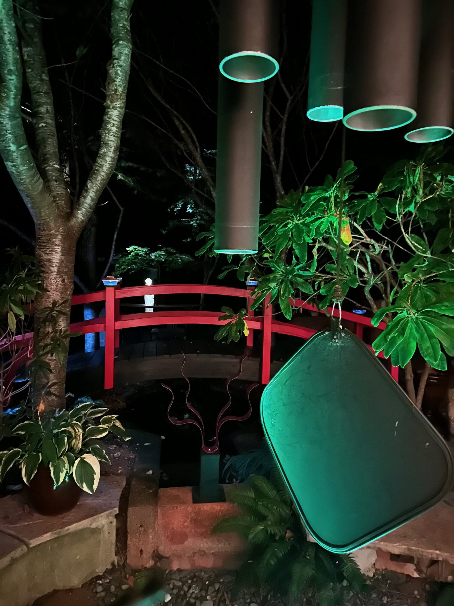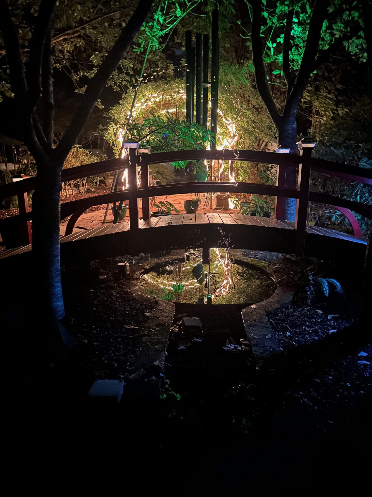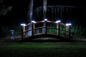 Here is a 4 ft, Asian style bridge with solar lights