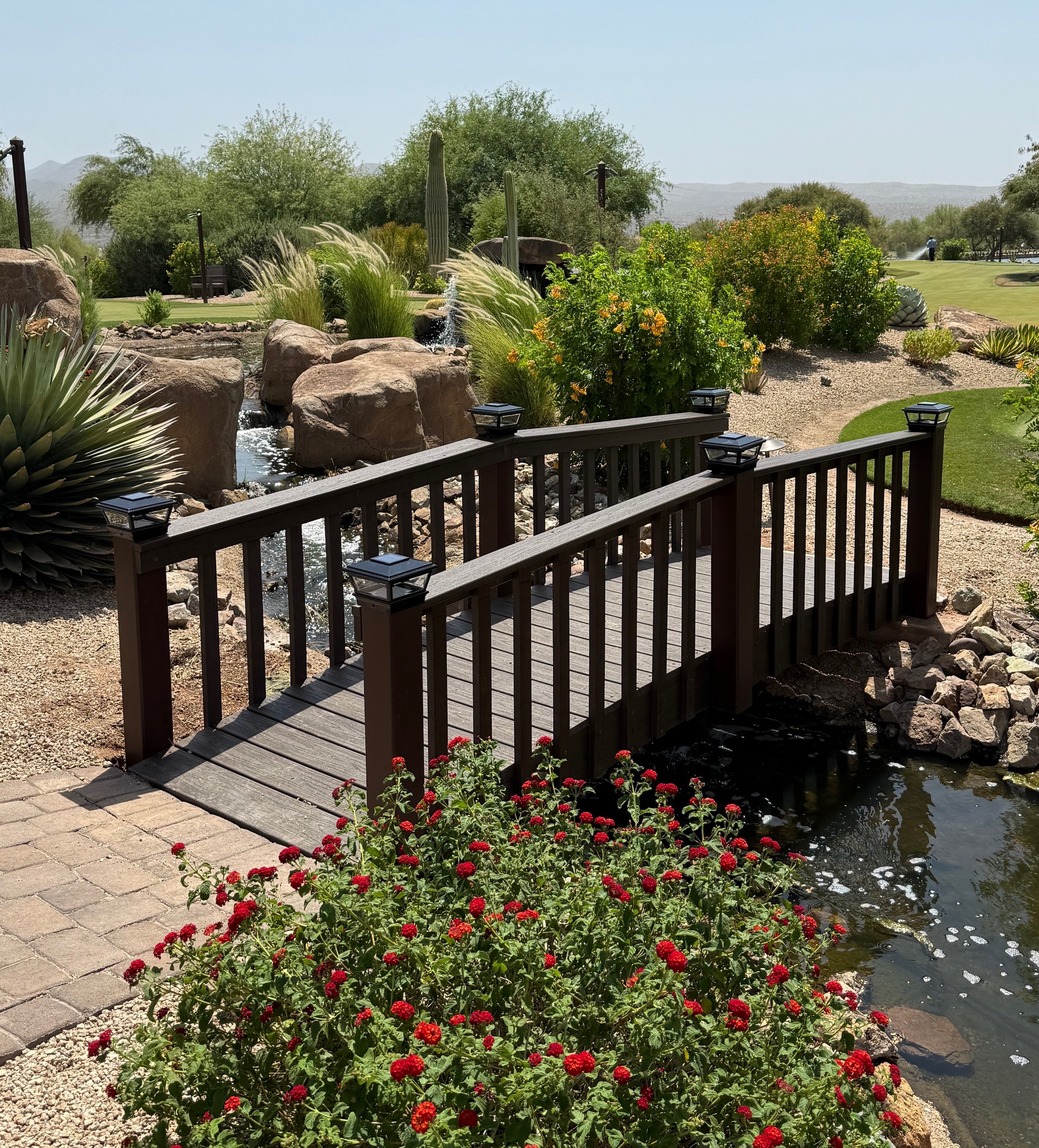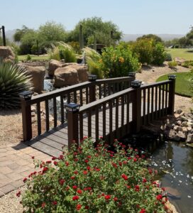 Here we have a maintenance Free, plastic lumber 10 foot bridge Delivered to an upscale Golf Country club, Located in Banning, Ca.