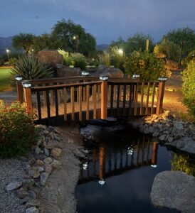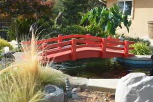 Here is a custom designed 8 foot step bridge looking very nice over a koi pond in Clovis, CA