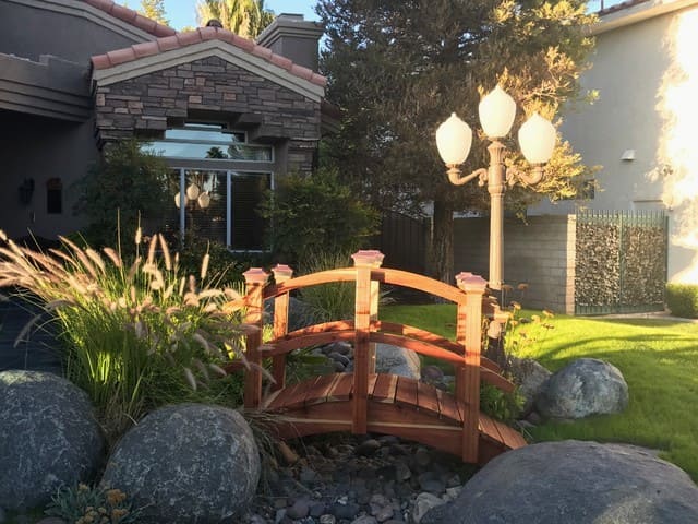 Because this wooden garden bridge has been pre-assembled, and sanded, assembly is quick and easy and can be done in as little as 60 minutes. The only tools needed to assemble your bridge are a crescent wrench and a power screw driver. The instructions are simple and won’t require much time to reassemble you bridge.You can choose from several bridge size options to suit landscaping needs.