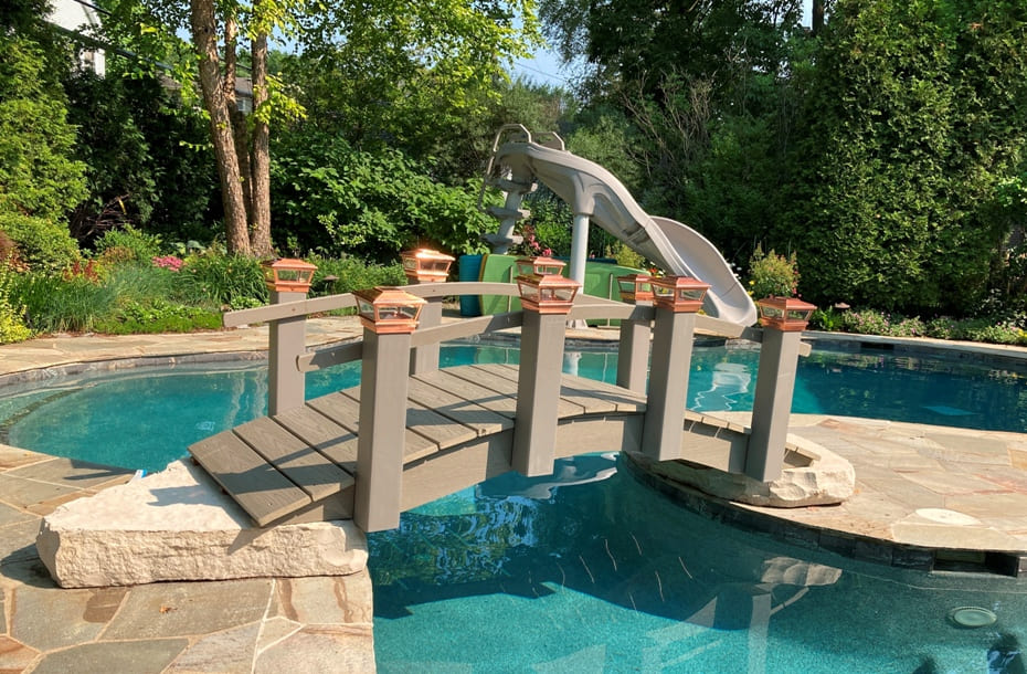 Weather Treatments and Solar Power Light Caps Add Beauty to your Garden Bridge