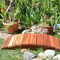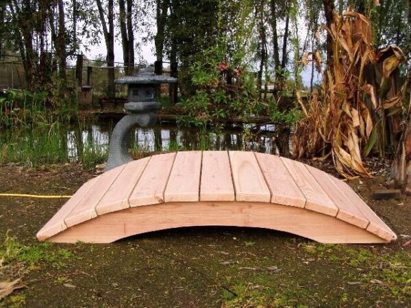 These finely detailed bridges will complement your Koi pond, creek, stream or yard. Hand-built with hand-selected redwood only. Galvanized hardware, pre–assembled pre-drilled and sanded. The only tools needed to assemble your bridge are a crescent wrench and a power screw driver.
