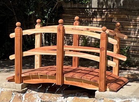 If you can close your eyes and just imagine your landscape by adding a Redwood Garden Curved Rail bridge to your heaven. This one or two option-rail bridge is hand-built with hand-selected California redwood. The wood and galvanized hardware will provide structure and stability despite being exposed to outdoor elements.