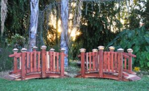 Because this wooden garden bridge has been pre-assembled, pre-drilled, and sanded, assembly is quick and easy and can be done in as little as 60 minutes. The only tools needed to assemble your bridge are a crescent wrench and a power screw driver. Choose from several bridge size options to suit your outdoor space. If you have any questions or a Custom Quote, you can contact our design consultant professional by calling and talk to Designer/Builder Joe 559 325-2597
