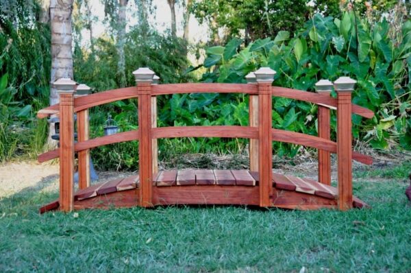 When deciding on what product to choose, all of your applications must be considered. Redwood Garden Bridges is there for you 24/7 to answer all your questions. It helps the experienced bridge builder and designer to look at pictures of where your bridge will be placed in order to help you establish what your needs are. There are many options once you decide on the type of product you are considering. Many designs are available as well as sizes, number of posts, lighting and of course stain or no stain.